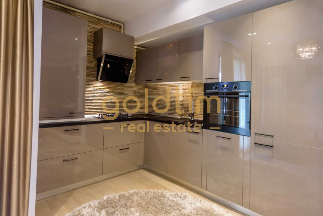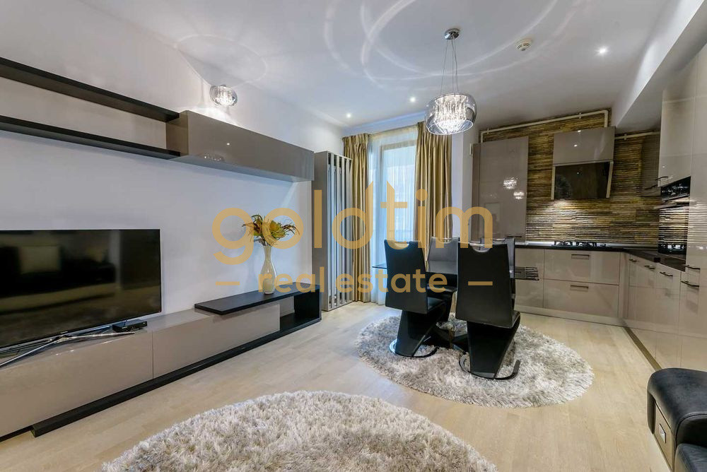 Apartamentul este situat la etajul 3 si beneficiaza de finisaje de top si mobilier de lux, fiind complet utilat, de cea mai buna calitate. Mobilierul si electrocasnicele, un loc de parcare in garajul subteran si o boxa, sunt incluse in pretul chiriei.