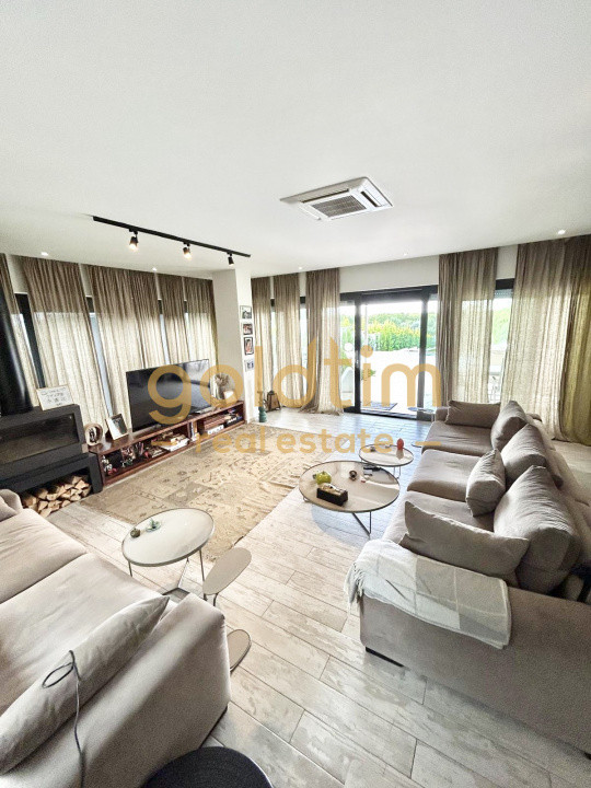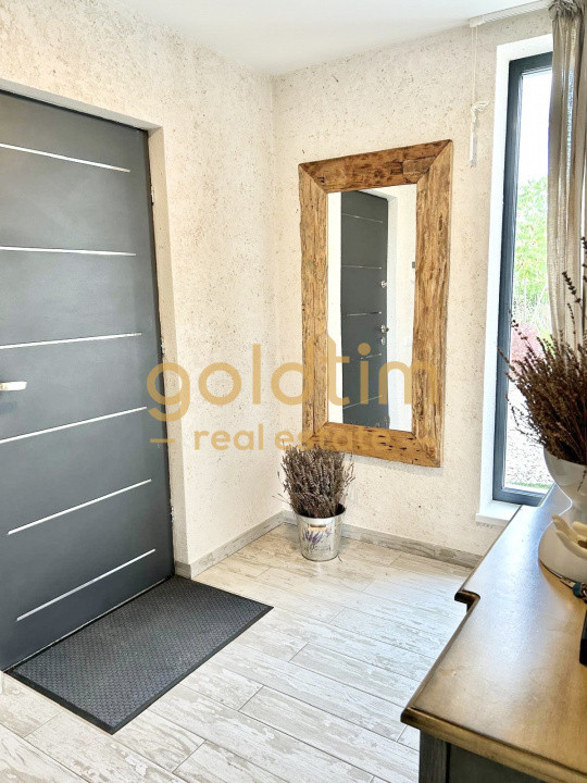 Tâmplărie din aluminiu și parchet triplu stratificat – finisaje de calitate superioară. Încălzire în pardoseală în living, hol și bucătărie; calorifere în dormitoare.