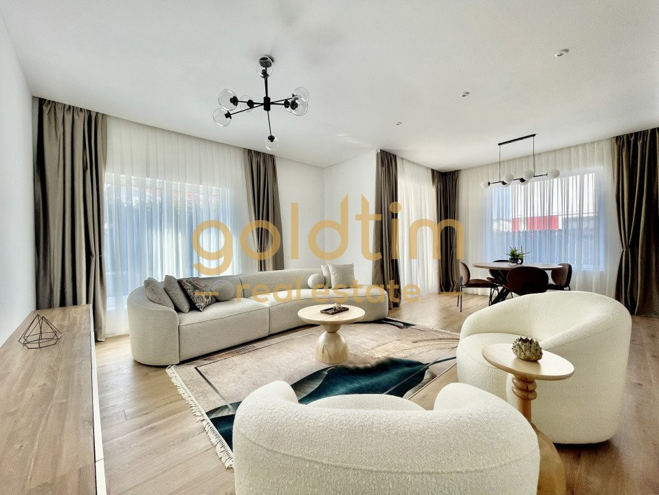 Goldtim Real Estate va prezinta spre ivanzare o vila noua, , situata intr-un complex rezidential in Pipera. Vila se inchiriaza PARTIAL mobilata si utilata, cu finisaje de calitate superiara si amenajata cu un designer de interior, mobila fiind premium.