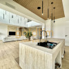 Bucătărie open space cu insulă travertin