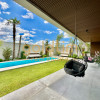 Curte cu plante exotice, palmieri, gazon cu aspersoare automate