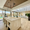 Bucătărie open space cu insulă travertin