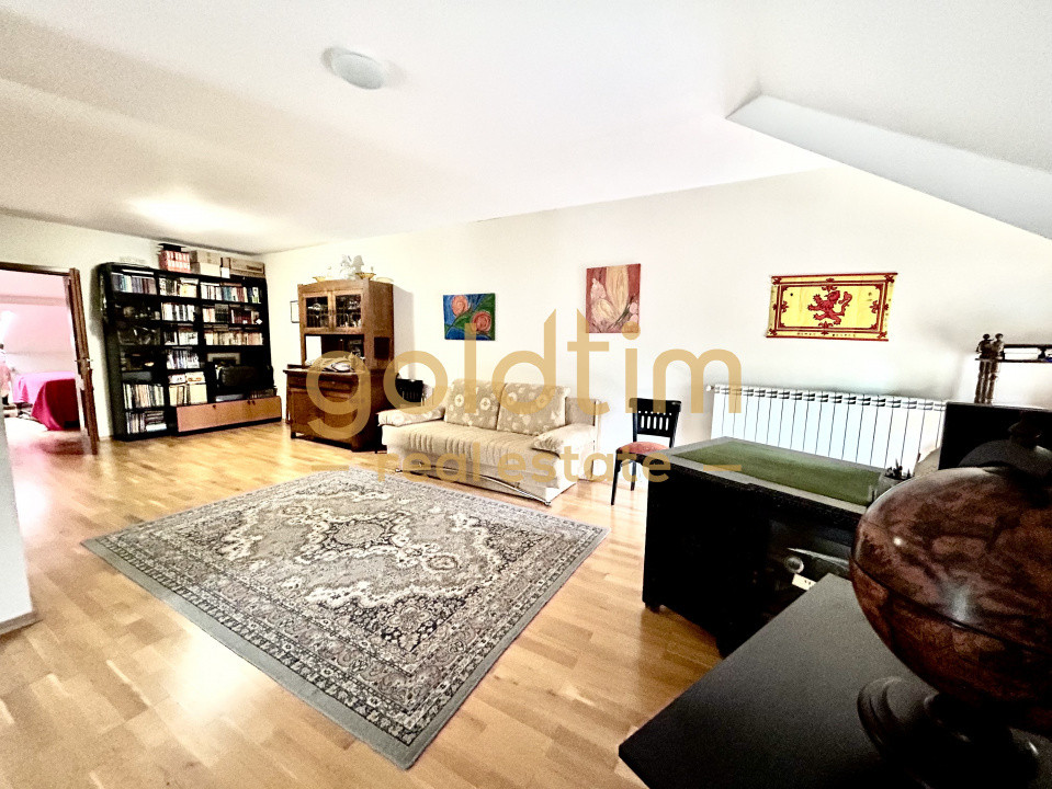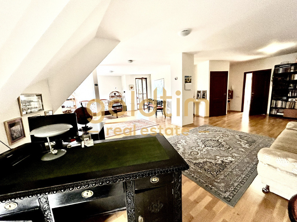 Mansarda este absolut spectaculoasa cu o suprafata impresionanata de 112mp, configurata cu o zona de 64mp de zi si separat zona de noapte cu dormitor de 27mp si baie de 8mp.