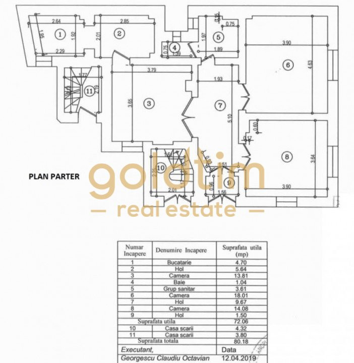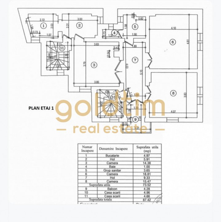 Imobilul este compartimenat in 9 camere, 4 grupuri sanitare, 2 bucatarii, 2 scari de acces, 3 intrari, balcoane si numeroase spatii de depozitare la subsol.